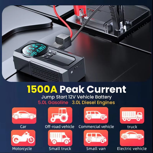 4-In1 Portable Car Battery Jump Starterboosterpowerbank 15000Mahlithiumbatterypack Withtire Inflatorled Light Car Accessories