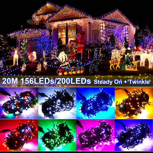 20M Black Wire 156/200 LED Fairy String Lights Garlands Christmas Tree Decoration for Wedding Party Outdoor Indoor EU UK Plug